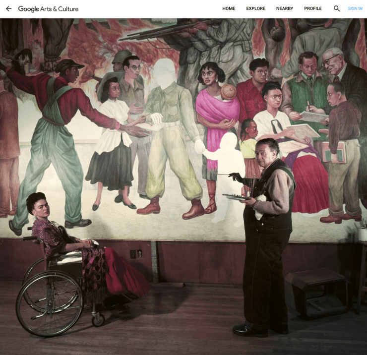 Para seguir compartiendo la visión particular de la artista mexicana Frida Kahlo en el mundo, Google Arts & Culture lanzó su primer proyecto de arte retrospectivo en línea dedicado a conmemorar la vida y obra de la artista. El objetivo es que la gente de todo el mundo pueda disfrutar de todo el contenido que Google ofrece sobre Kahlo, incluyendo una colección virtual compuesta por más de 800 piezas, entre los que se encuentran más de 700 archivos de fotos, cartas y retratos, 5 recorridos virtuales con Street View, y experiencias de realidad virtual, entre otros.