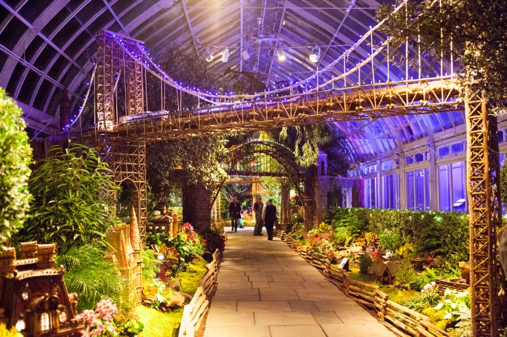 Podrás disfrutar de la exhibición anual de modelos clásicos de trenes moviéndose a través de una instalación hecha a mano de los edificios icónicos de la ciudad en el New York Botanical Garden’s Holiday Train Show. Más de 175 miniaturas, incluyendo Oculus, One World Trade Center y el Battery Maritime Building, son parte de esta hermosa exhibición.