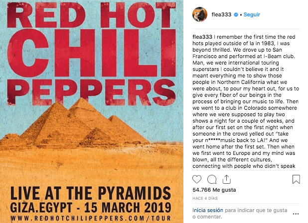 El bajista de la banda, Flea, posteo lo emocionado que esta de este gran concierto en su cuenta de Instagram