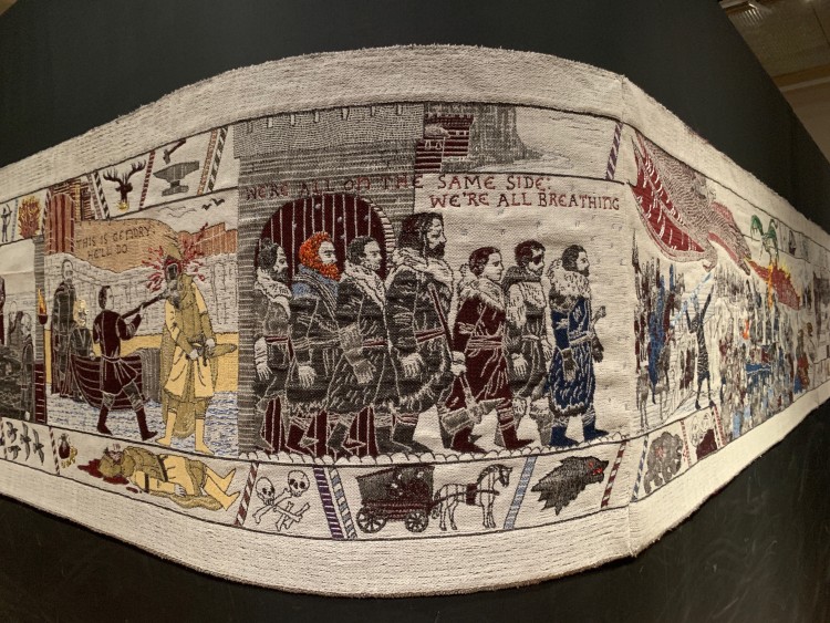 Superando la longitud del famoso tapiz de Bayeux (un gran lienzo bordado del siglo XI de casi 70 metros de largo ), el Tapiz de Games of Thrones en el Museo del Úlster (Botanic Ct, Belfast BT9 5AB), recorre los momentos clave de la serie. El diseño y el acabado se han hecho a mano, pero el bordado en sí se realizo con equipos de última punta. El tapiz revela los momentos culminantes de cada episodio de las temporadas 1 a la 7 y se ha elaborado con lino de Ferguson’s Irish Linen, una de las pocas fábricas de lino que quedan en Irlanda del Norte. La sección de la octava temporada se completará cuando termine la serie.