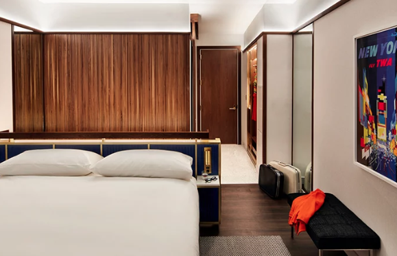 El hotel TWA cuenta con 512 habitaciones, seis restaurantes y bares, uno de ellos dirigido por el chef Jean-Georges Vongerichten, galardonado con una estrella Michelin, y una cafetería y salón de cócteles Intelligentsia.