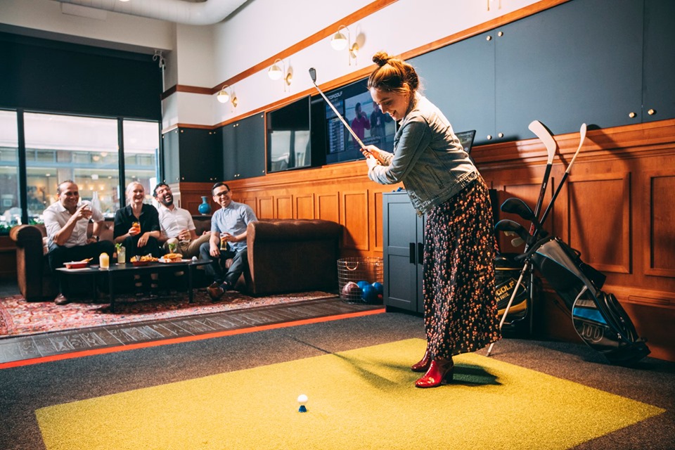 Es un espacio donde podrás disfrutar de una gran variedad de juegos virtuales en dos simuladores. Podrás jugar «golf bajo techo», como el que este mismo club tuvo en el noveno piso a principios de 1900, donde llegaron a jugar grandes leyendas, como Charles «Chick» Evans. Cada simulador tiene la capacidad hasta para ocho personas.