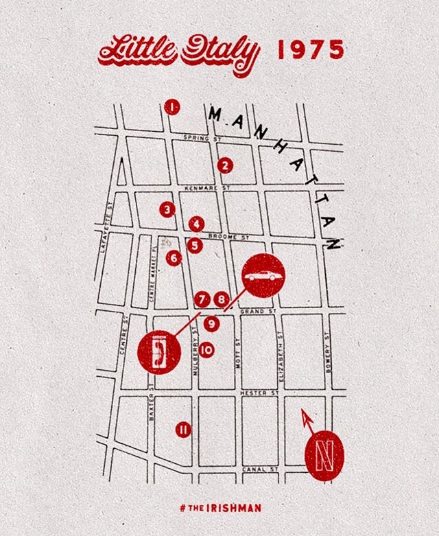 Del 22 al 23 de noviembre, Netflix tomó Little Italy y lo llenó con parafernalia de su nueva película The Irishman, la cual es protagonizada por los grandes actores, Al Pacino, Robert De Niro y Joe Pesci.
