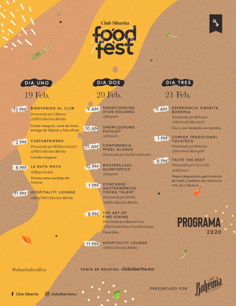 El Club Sibarita Food Fest se llevará acabo este año del 19 al 21 de febrero en Mérida, Yucatán, en donde se celebrará la esencia de las cocinas tradicionales del sureste mexicano, así como la maestría y creatividad de los chefs que innovan en nuestro país.