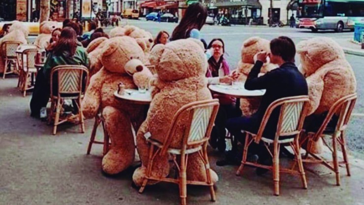 A partir del Covid-19, los osos han servido para mantener la distancia, sobre todo en restaurantes.