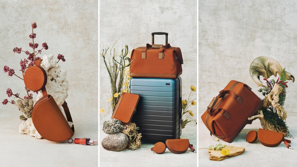 La colección consta de una de las famosas maletas metálicas con cierre de Away, pero con un efecto ómbre que combina el azul y el café, representando el cielo y la tierra de Ojai. Otros accesorios son la maleta de mano, una funda para tablet con diferentes espacios para guardar tus documentos, así como un set de bolsas para guardar perfectamente tu ropa.