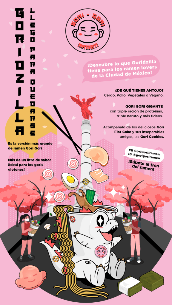 Gori Gori, lanzó recientemente su versión Goridzilla gigante de Gori Gori con una triple ración de proteínas (cerdo, pollo, camarón, vegetales y vegano), en una presentación de litro y 250 ml. La porción ideal para los goris glotones que siempre tienen espacio para ¡más ramen!