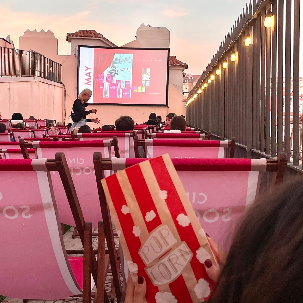 Las funciones se llevan acabo en 2 terrazas con vistas espectaculares. La primera es Carmo Rooftop, en el centro histórico y Doca da Marinha, cerca del río en la que seguramente podrás ver atardeceres inolvidables. En ambas ubicaciones encontrarás unas coquetas sillas tipo de playa en las que te podrás acomodar para ver tu película. Si hay un poco de aire, Cine Society pondrá a tu disposición mantas para abrigarte, pero si hubieran vientos más fuertes o comenzara a llover, la función se cambia de fecha y ellos te avisarán cuándo.