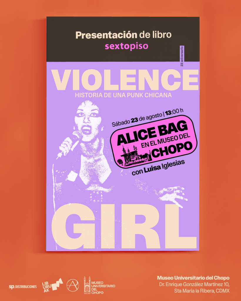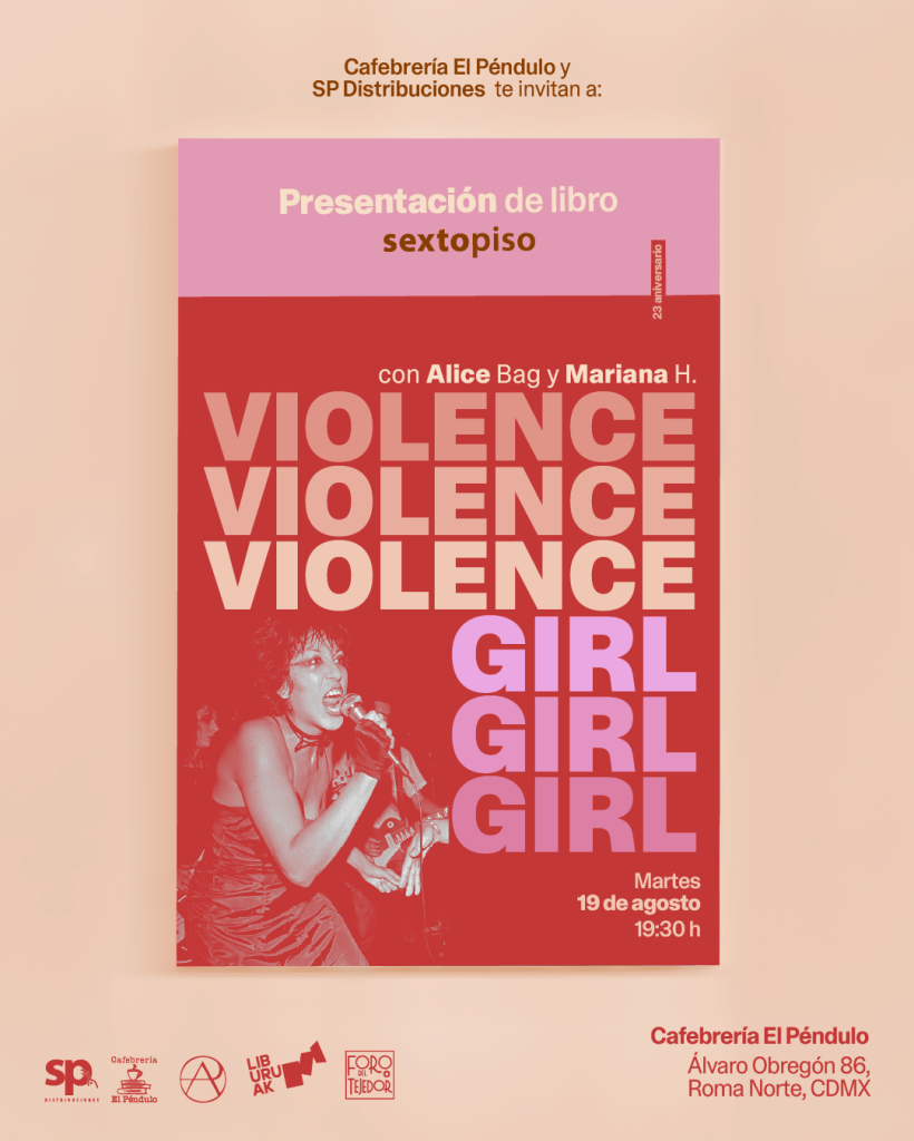Este agosto, la Ciudad de México recibirá a Alice Bag, una de las voces más potentes del punk estadounidense y figura clave en la cultura chicana. La cantante, compositora, activista y escritora llegará para presentar la edición en español de su libro Violence Girl, publicado este año por Liburuak, y para participar en una serie de actividades que conectan música, memoria y resistencia.