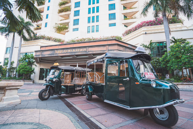 Más allá del lujo moderno, The Peninsula celebra la identidad local. En Bangkok, los huéspedes pueden viajar en tuk-tuks tradicionales; en Manila, un Jeepney Sarao de 1955 con interiores de cuero y minibar climatizado; en París, un Citroën 2CV vintage, y en Londres, un clásico taxi negro Austin FX4 adaptado para la máxima comodidad. Cada vehículo cuenta una historia y conecta a los visitantes con el espíritu del destino.