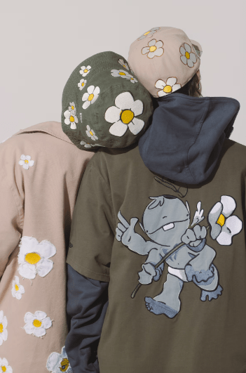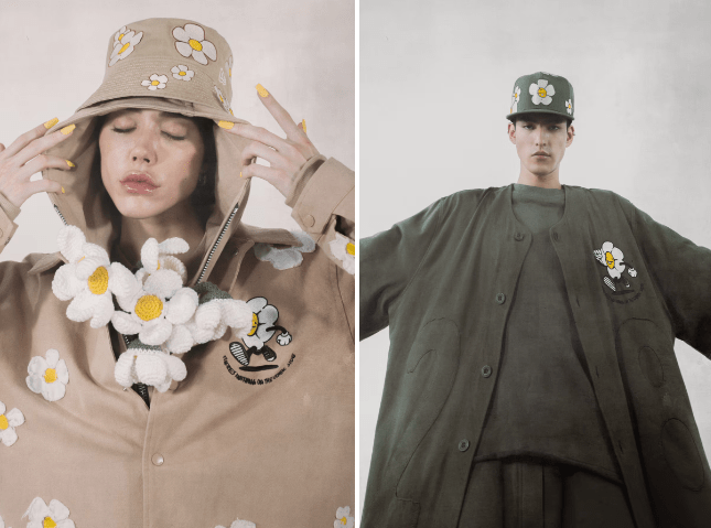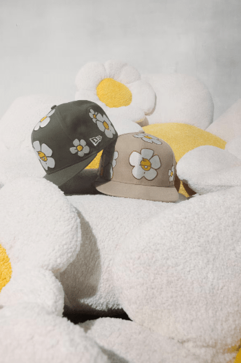 La colección incluye dos bucket hats y dos caps 59FIFTY reinterpretadas en verde olivo y beige arena, tonos que funcionan como lienzo para la estética floral de Roji y la presencia de Rub, uno de sus personajes más queridos. Al headwear se suman dos prendas clave: un jersey de baseball diseñado bajo la paleta de la cápsula —con el expertise que New Era ha cultivado en las ligas profesionales de México— y una coach jacket beige cubierta por las flores del artista, pensada para convertirse en pieza insignia.