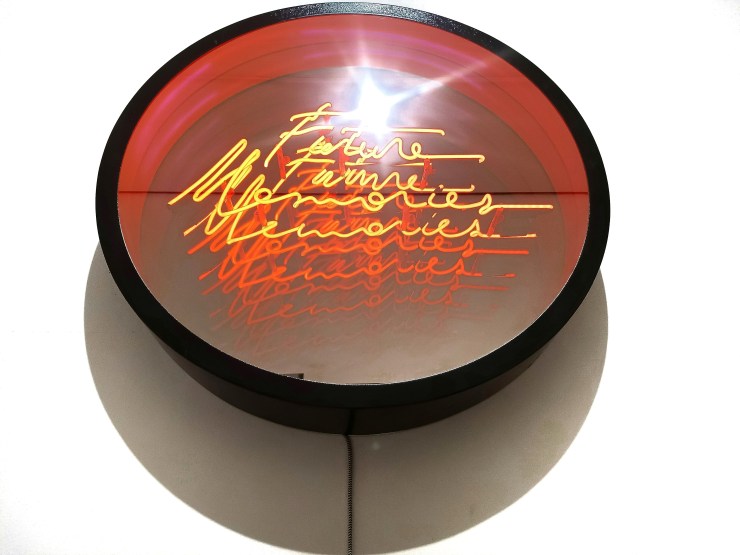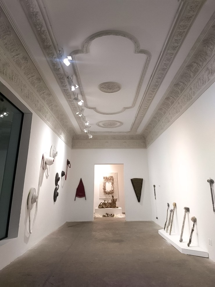Una vez estando en el segundo piso, el marco pintado nos da la bienvenida a la exposición La deriva de un gesto post- romántico compuesta por dos salas panorámicas que generan inevitables reflexiones sobre nuestro estilo de vida enfocada en el consumismo inconsciente, social e individual y su relación con el cuidado de la naturaleza y nuestro ecosistema. Para ello observamos el proceso de degradación de una botella de plástico y el impacto medioambiental que conlleva, los residuos de componentes no degradables encontrados en un mamífero que los ingirió, dichos desechos materiales son encontrados en mar abierto, o bien la duda ejercida en los procesos de la generación de plásticos como parte de la evolución tecnológica que, contraproducente a la practicidad de la nueva era digital, expone y cuestiona el beneficio humano versus el lugar que nos es otorgado como hogar y debemos preservar y respetar para nosotros, para las generaciones venideras: el planeta Tierra. Exposición de de Hugo Martínez-Tormo. Hasta el 16 de junio 2019.