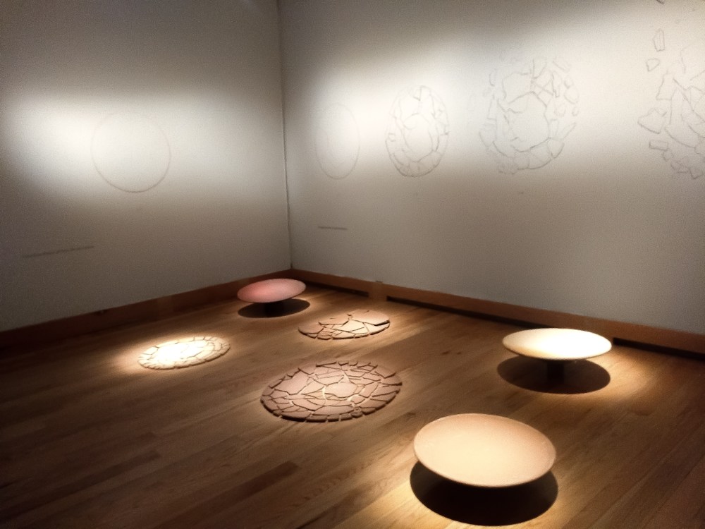 Una vez estando en el segundo piso, el marco pintado nos da la bienvenida a la exposición La deriva de un gesto post- romántico compuesta por dos salas panorámicas que generan inevitables reflexiones sobre nuestro estilo de vida enfocada en el consumismo inconsciente, social e individual y su relación con el cuidado de la naturaleza y nuestro ecosistema. Para ello observamos el proceso de degradación de una botella de plástico y el impacto medioambiental que conlleva, los residuos de componentes no degradables encontrados en un mamífero que los ingirió, dichos desechos materiales son encontrados en mar abierto, o bien la duda ejercida en los procesos de la generación de plásticos como parte de la evolución tecnológica que, contraproducente a la practicidad de la nueva era digital, expone y cuestiona el beneficio humano versus el lugar que nos es otorgado como hogar y debemos preservar y respetar para nosotros, para las generaciones venideras: el planeta Tierra. Exposición de de Hugo Martínez-Tormo. Hasta el 16 de junio 2019.