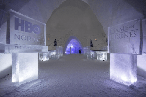 Cada año, se utilizan cerca de 20 millones de kilos de nueve y 350,000 kilos de hielo para construir la espectacular SnowVillage en Lapland, Suecia. Esta villa cuenta con un hotel, con cuartos y suites hechos completamente de hielo, así como un restaurante, bar y una capilla. Pero este año, le dieron un twist muy interesante, la temática es Games of Thrones.