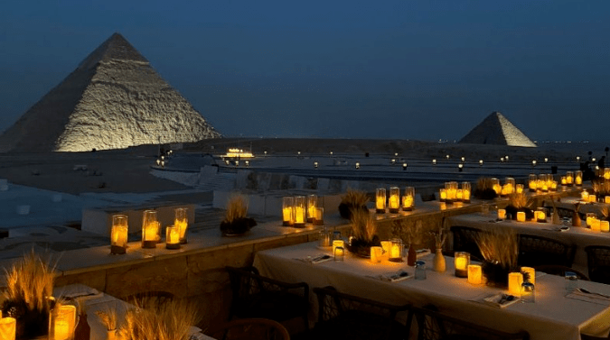 A partir del jueves 20 de julio y hasta el 20 de agosto, Khufu’s Bistro, el querido restaurante frente a las Pirámides de Guiza, ofrecerá cenas al atardecer por primera vez. Una experiencia única para disfrutar de la gastronomía egipcia contemporánea justo a los pies de la Gran Pirámide, mientras el desierto se transforma con la caída del sol.